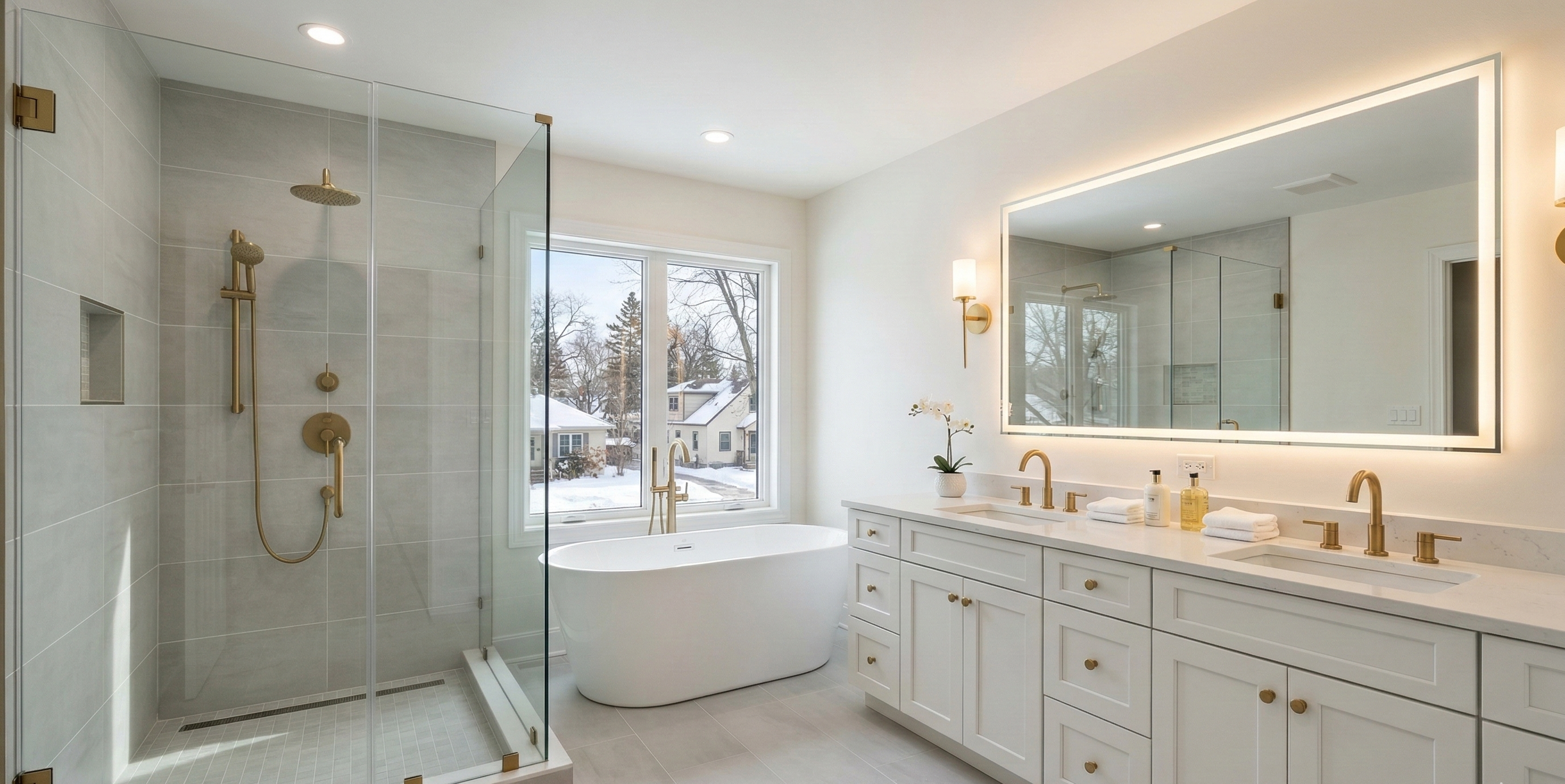 Transform your bathroom into a modern retreat. Walk-in showers, new vanities, tile surrounds - our most popular service with 5-star reviews across Minneapolis.